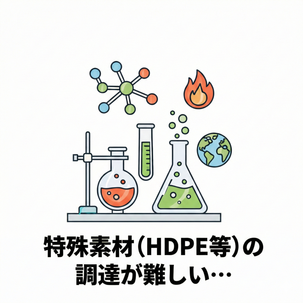 耐薬品性、耐熱性など、特殊な要件で素材が見つからない。