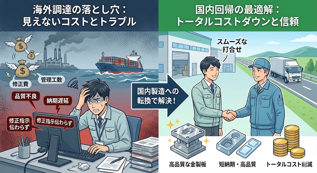 しかし、私たちは現場のプロとして、あえて提言します。 **「安易な海外シフトは、かえってコストを増大させるリスクがある」**と。