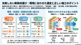 断熱材の種類ごとの違い・メリット・デメリットを比較し、用途別の選び方まで解説。結露や施工ミスを防ぐための判断基準も紹介します。